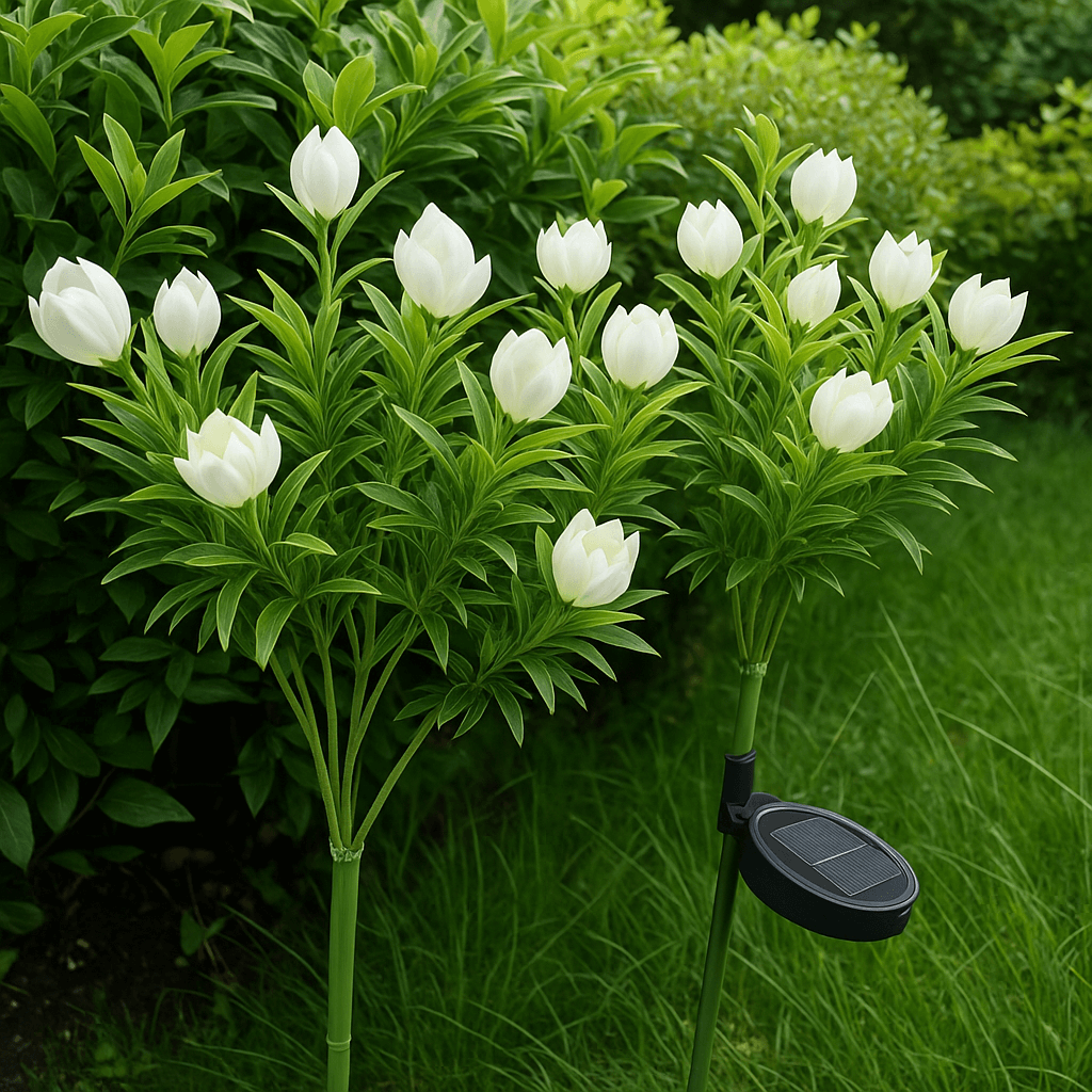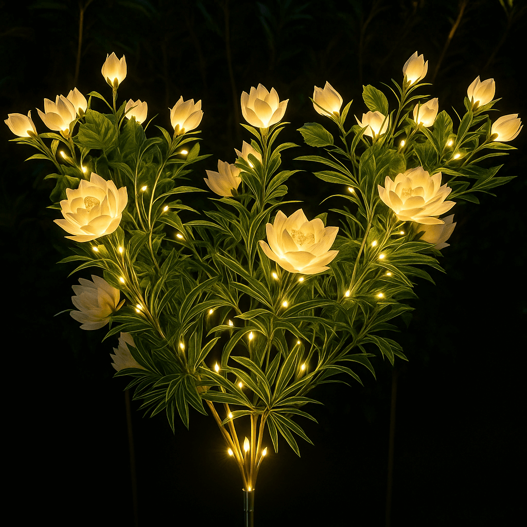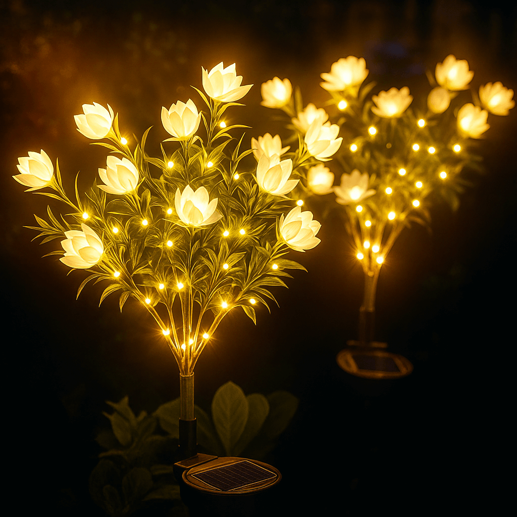 Deze sfeervolle solarverlichting met delicate rozenknoppen verspreidt een warm licht en geeft elke buitenruimte een romantische uitstraling.