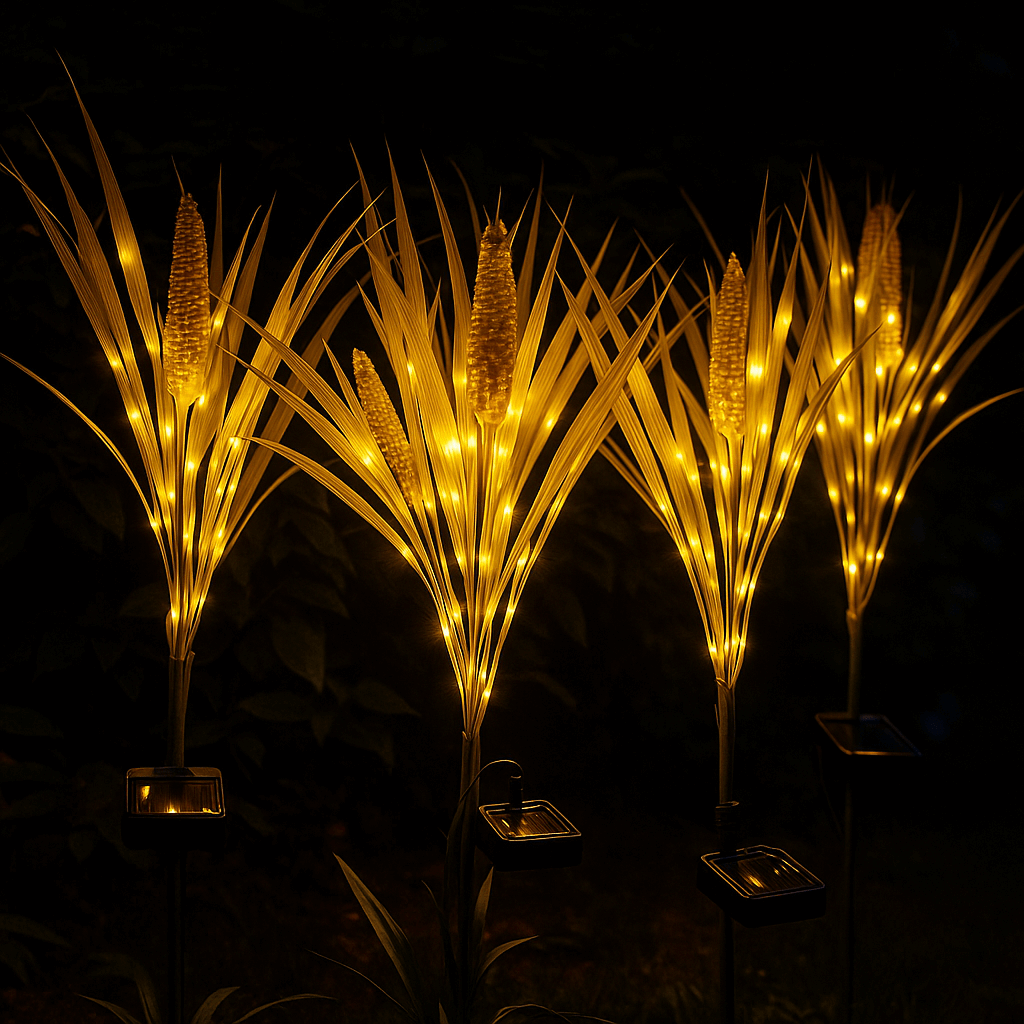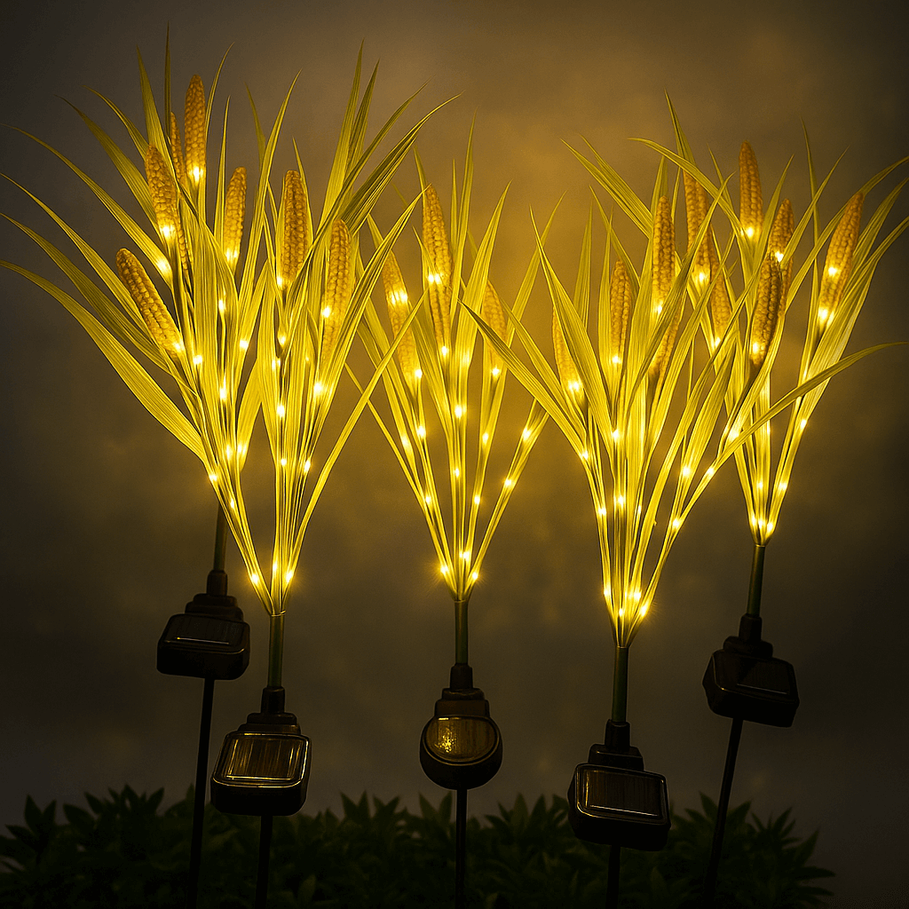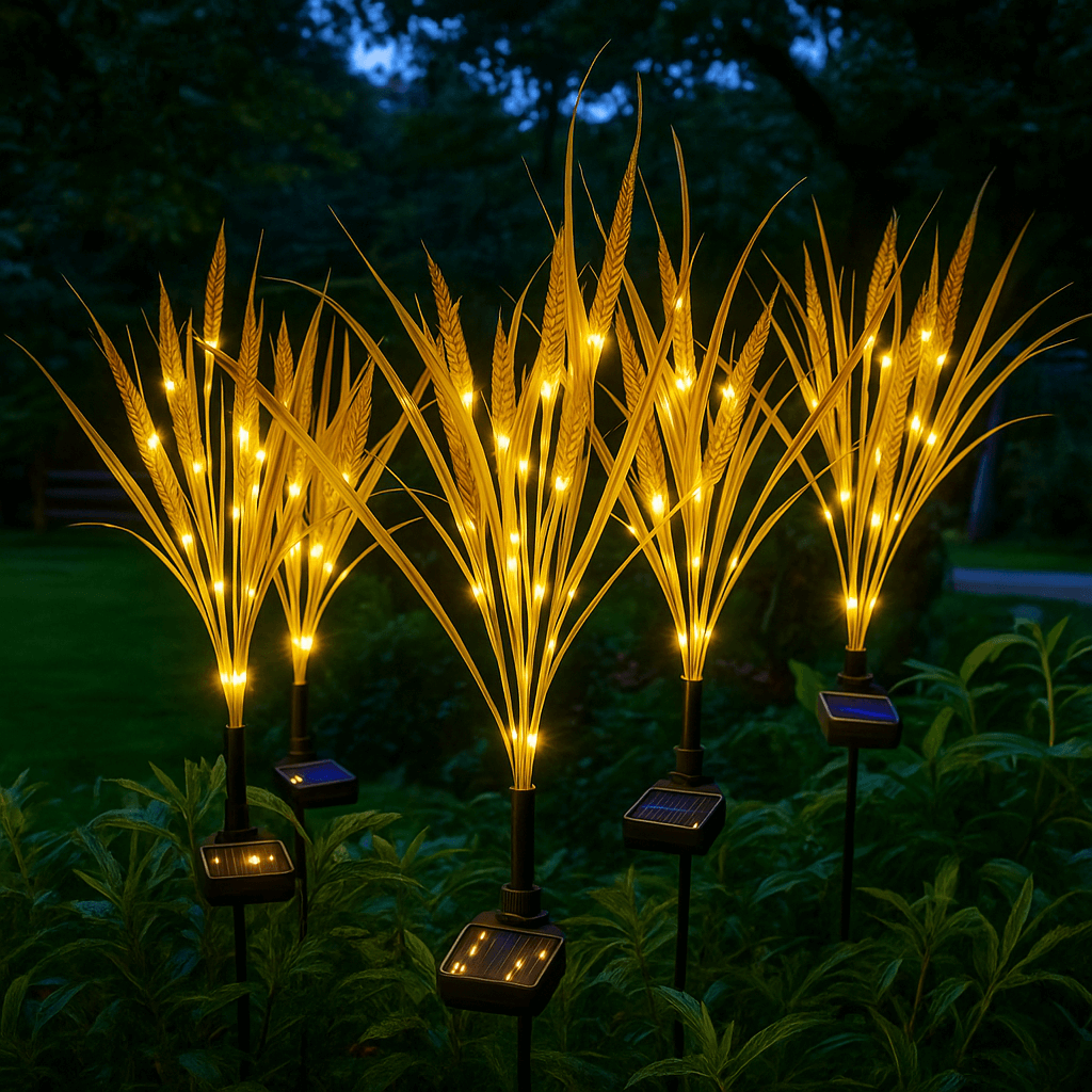 Deze sfeervolle LED-lampen in tarwevorm creëren een warme, magische ambiance en brengen je buitenruimte tot leven.