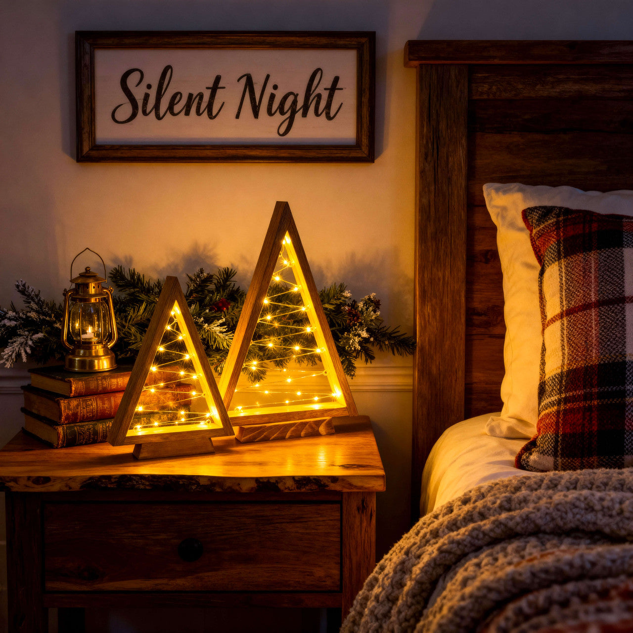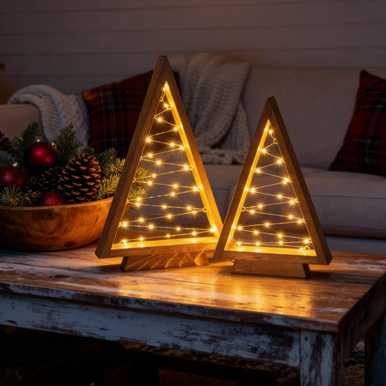 Breng warme, Scandinavische sfeer in huis met de Nordic Wood Tree — een minimalistische houten kerstboom lamp die elke ruimte bijzonder maakt.