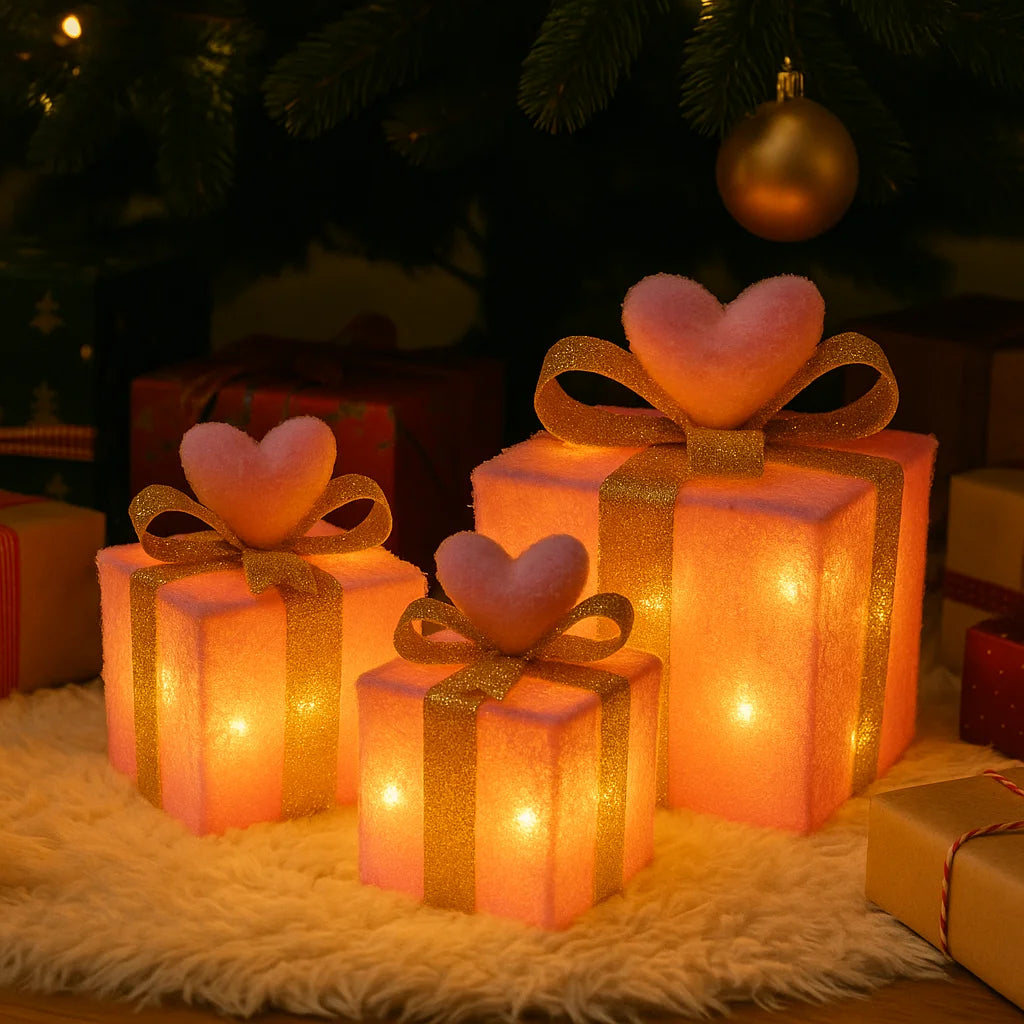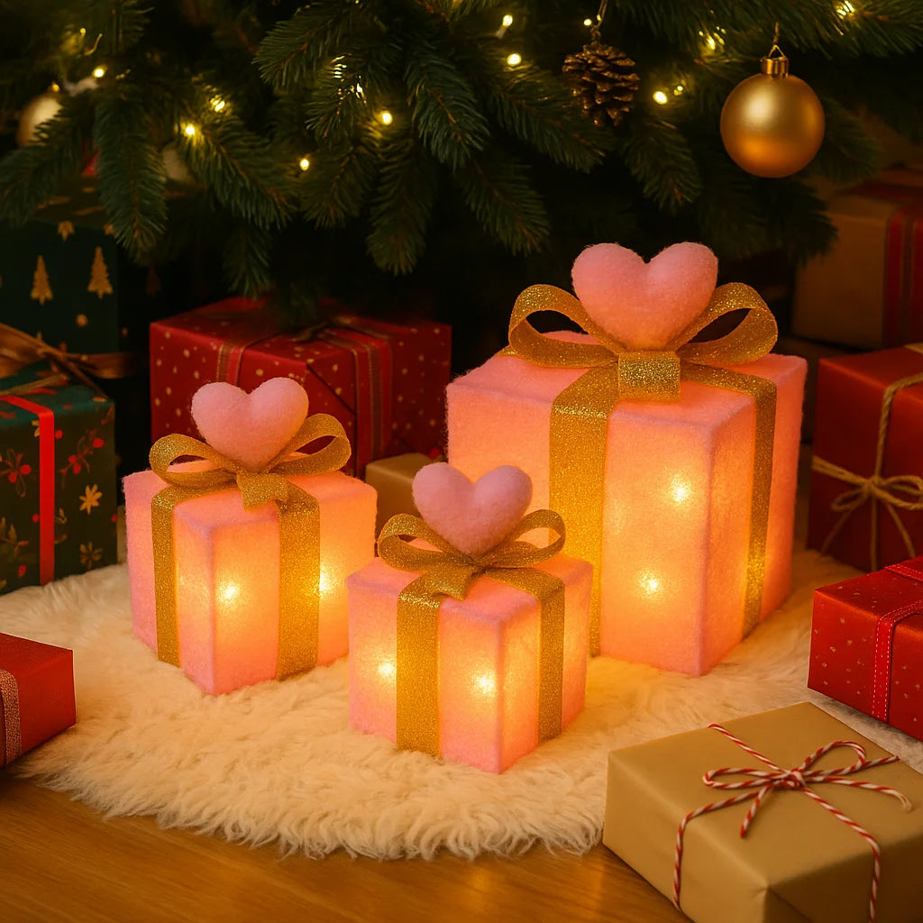 Hun warme roze tint, gouden linten en zachte hartdetails maken ze tot een unieke toevoeging aan je kerstdecor.