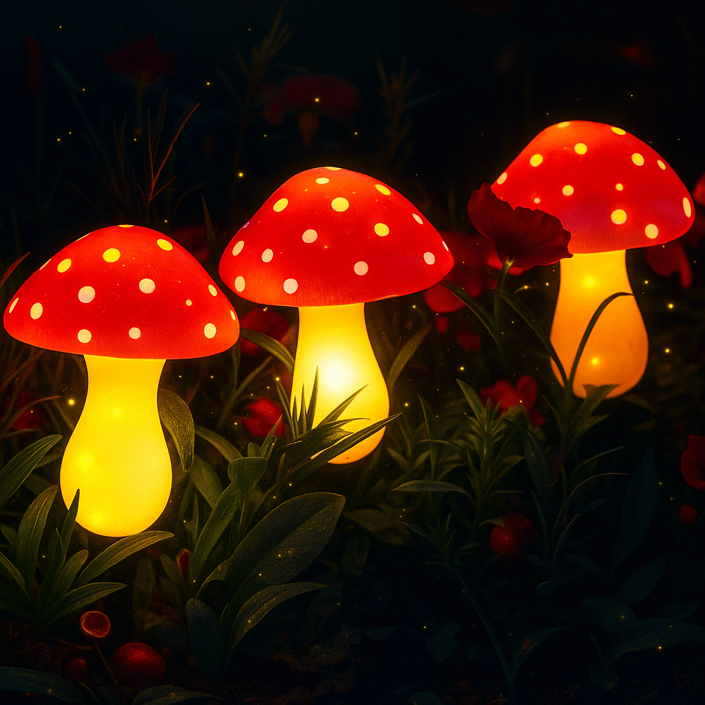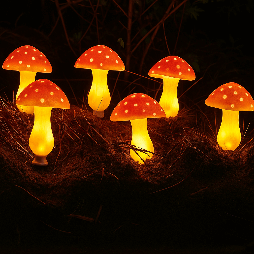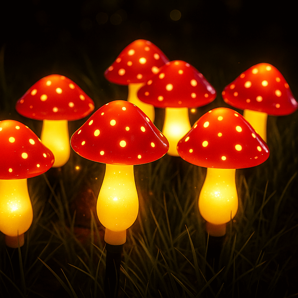 Deze sfeervolle paddenstoel-lampjes geven een warm, zacht licht en voegen een speelse touch toe aan je buitenruimte.