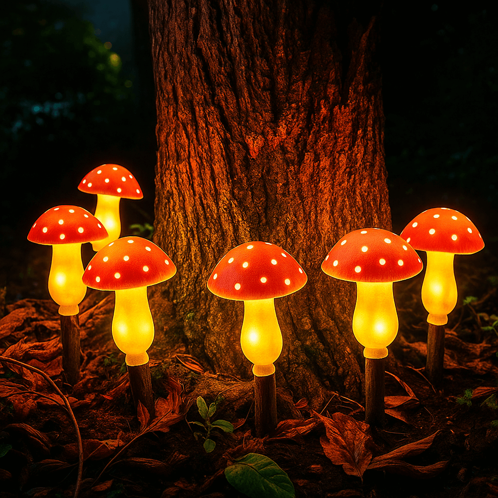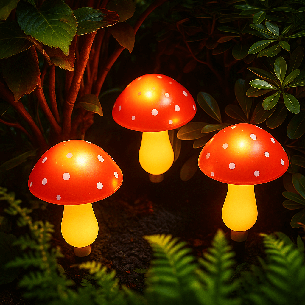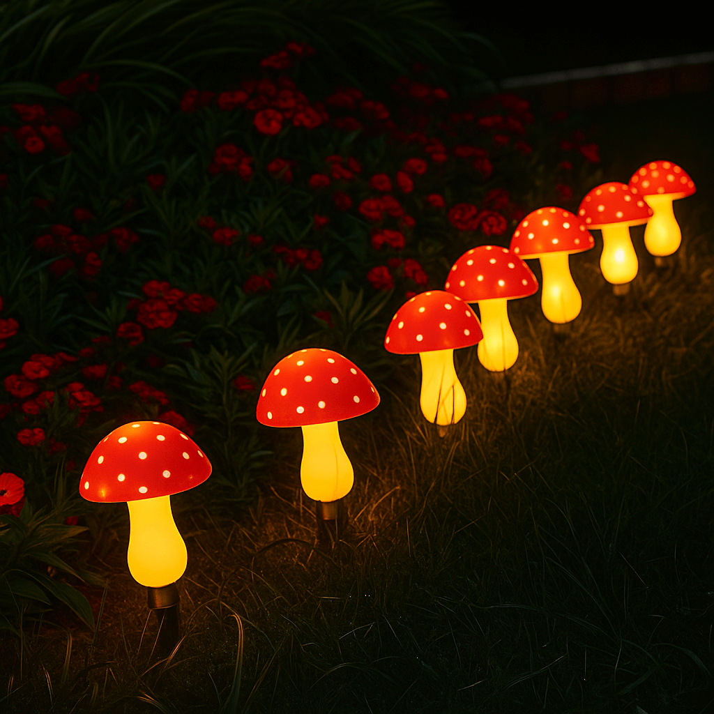 Deze sfeervolle paddenstoel-lampjes geven een warm, zacht licht en voegen een speelse touch toe aan je buitenruimte.